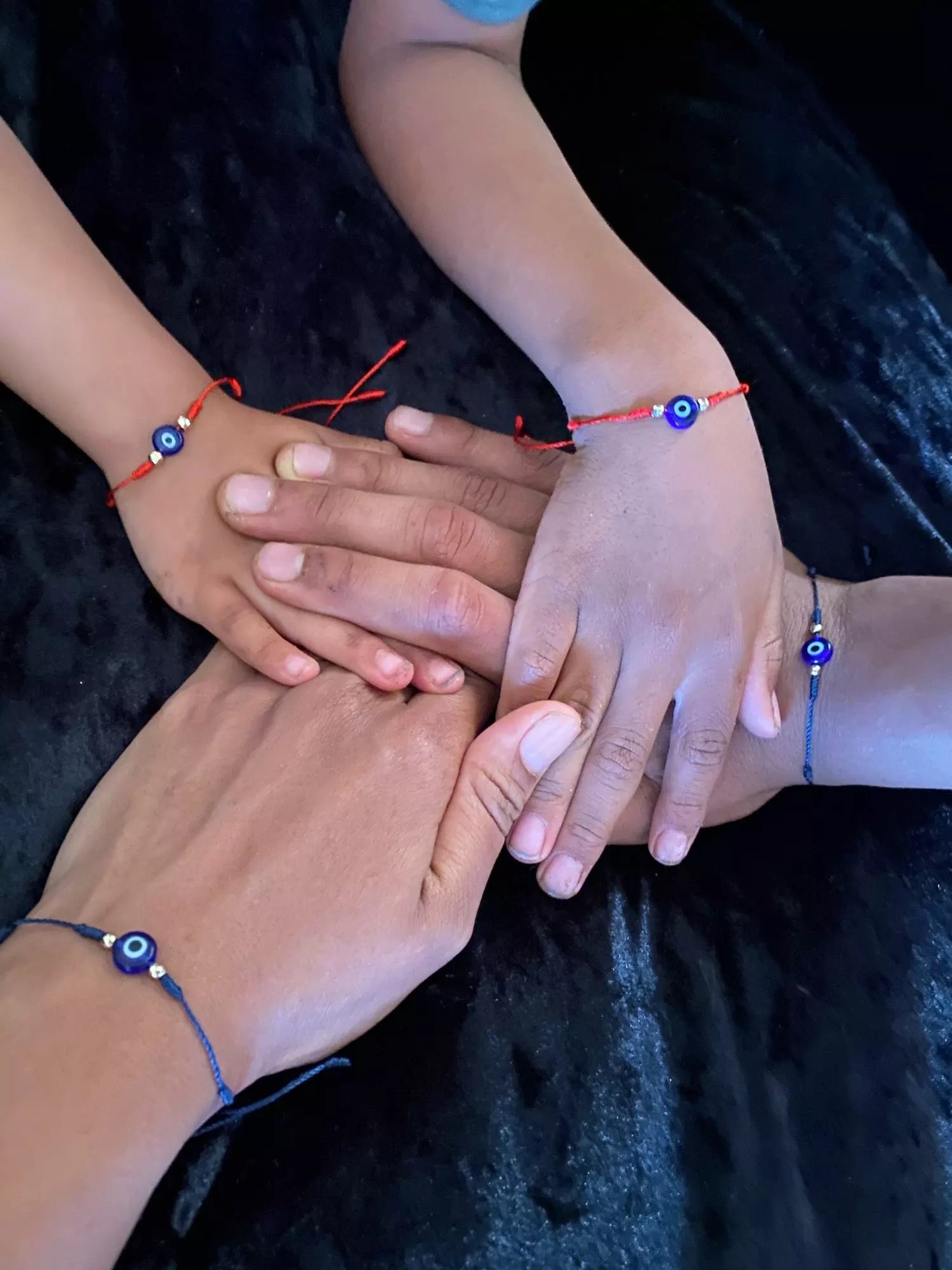 El azul, asociado al agua, es el signo del buen Karma, se vincula a las buenas energías y a la protección contra el mal de ojo.