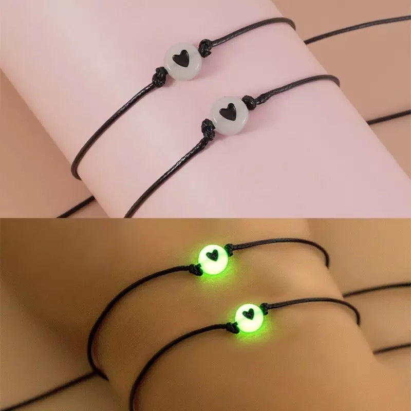PULSERA HILO ROJO CORAZONES BRILLAN EN LA OSCURIDAD