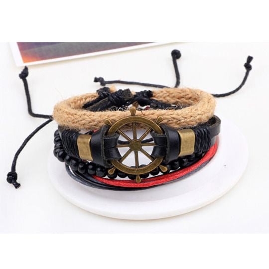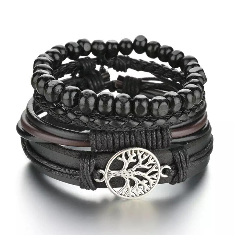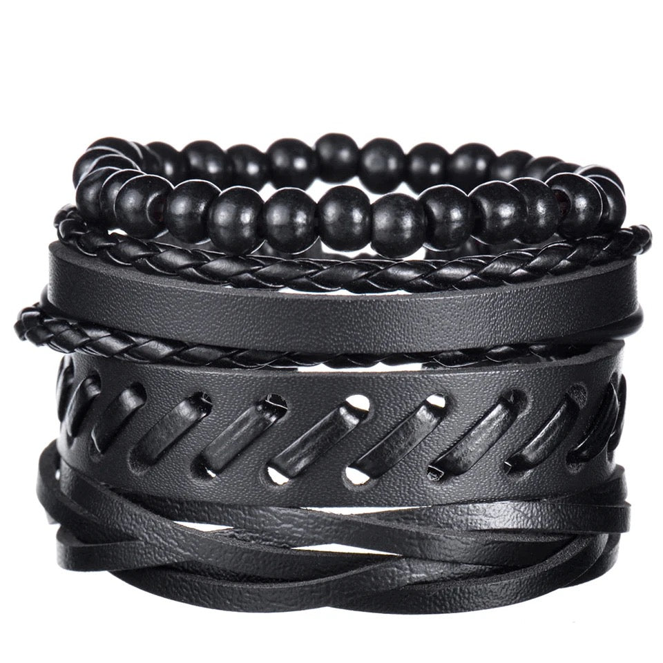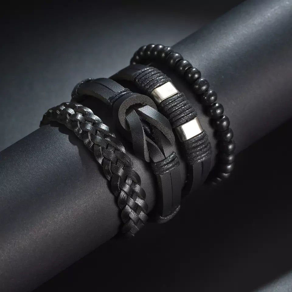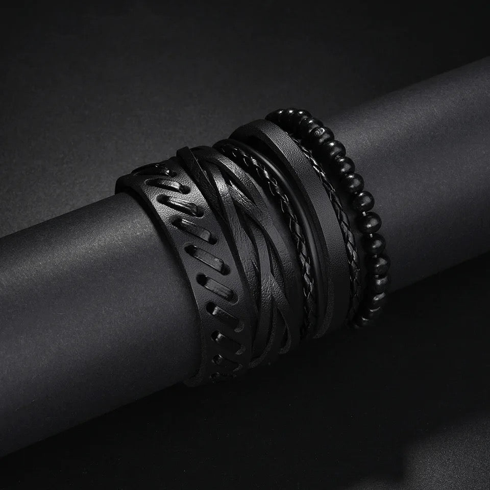 SET DE BRAZALETES EN CUERO