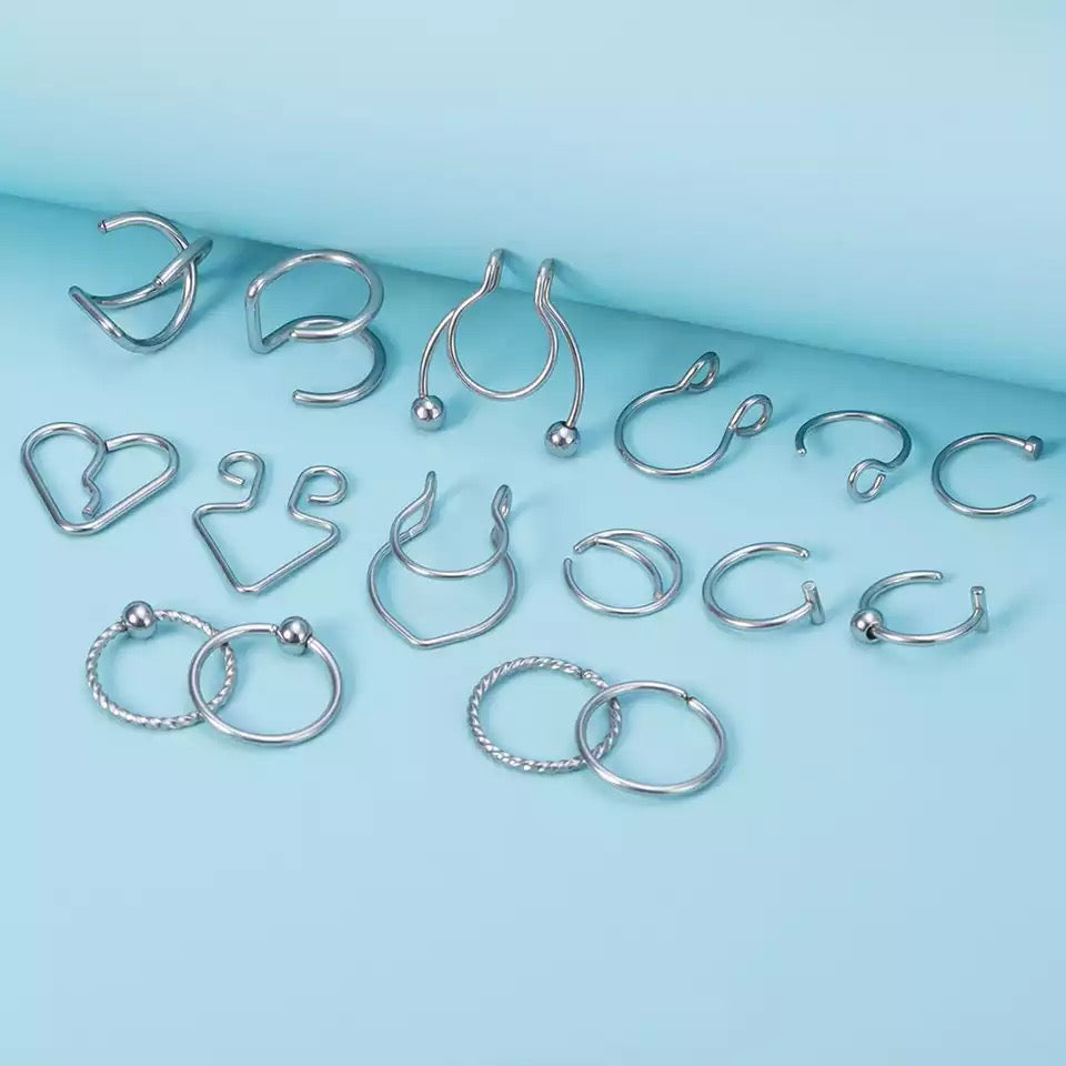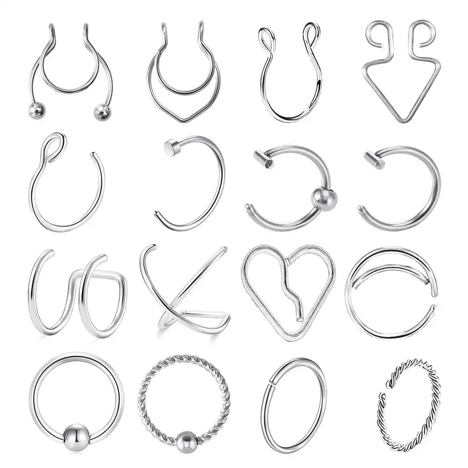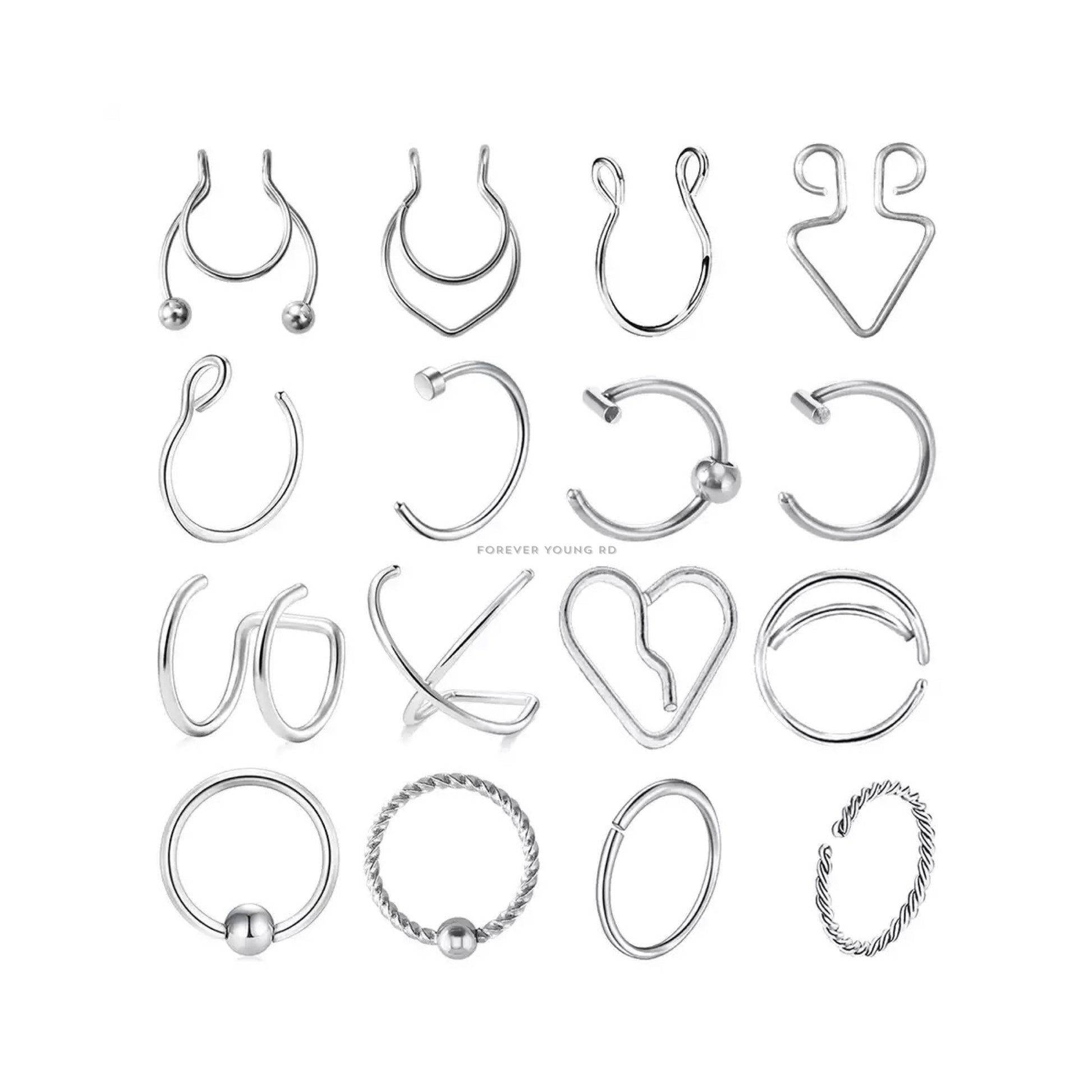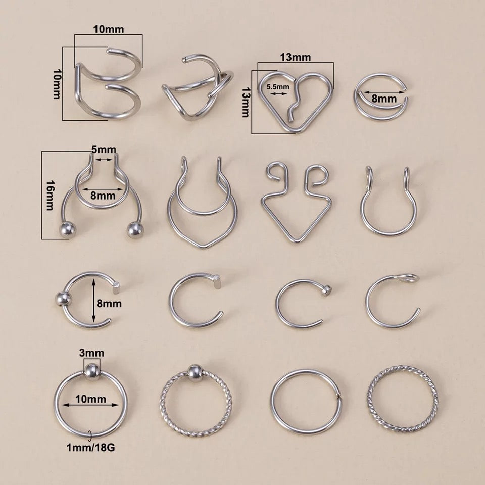 SET PIERCINGS FAKE A PRESIÓN ACERO INOXIDABLE 16 PIEZAS
