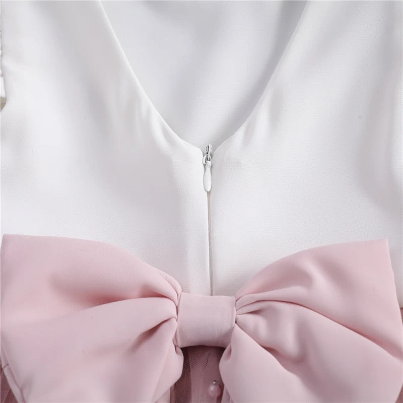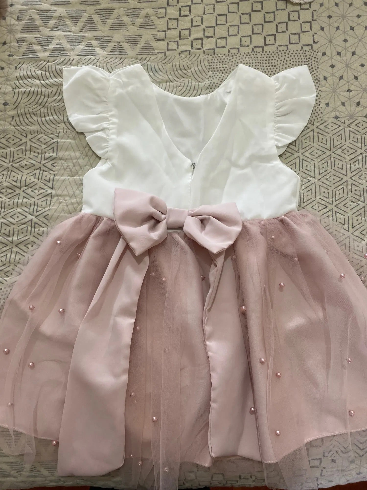 Descripción: Hermoso vestido corte princesa con lazo grande y perlas 💕