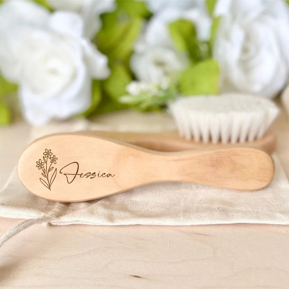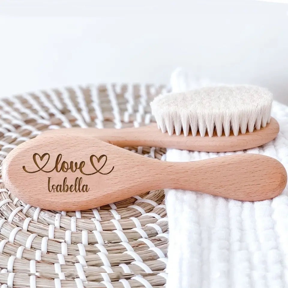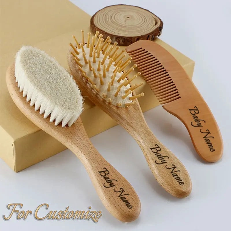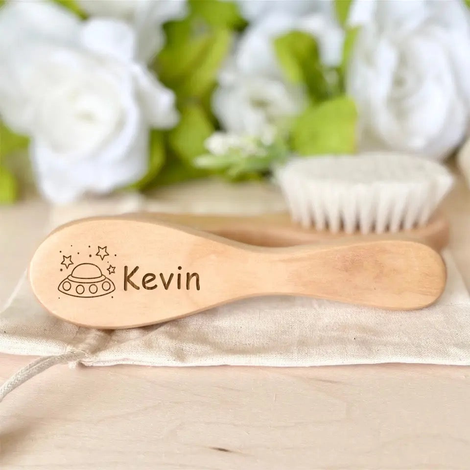 Cepillo y Peine para el pelo personalizado con un nombre, fabricado para no hacer daño al bebé.